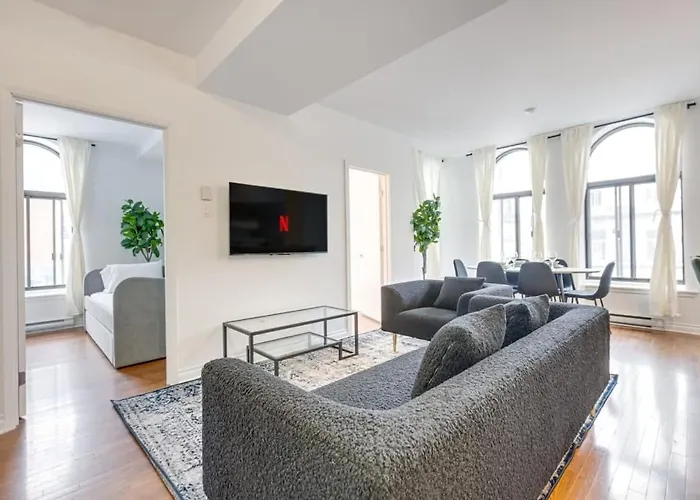 Der Flughafen Quebec ist 19 Autominuten entfernt, während der Bahnhof Gare du Palais nur 15 Minuten zu Fuß entfernt ist.