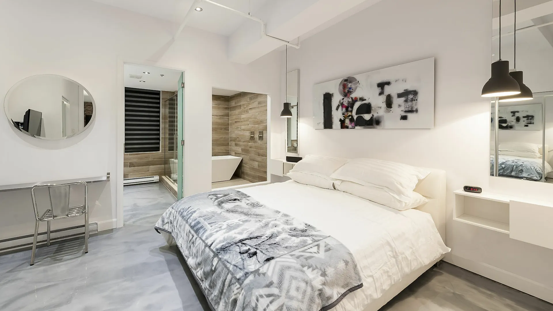 De meeste bezienswaardigheden van Montréal, zoals McGill-universiteit en Museum van Montreal voor Schone Kunsten, zijn er in de buurt. Het is op loopafstand van Kathedrale basiliek Maria Koningin der Wereld, tevens is er Peel metrostation circa 5 minuten wandelen hiervandaan. Dit appartement bevindt zich binnen 350 meter verwijderd van Jerome Ferrer Europea, het is een goede eetgelegenheid.